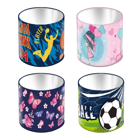Ha egy igazán elbűvölő, ugyanakkor praktikus ceruzatartót keresünk, akkor ezek a fém Luna Must ceruzatartók biztosan elnyerik majd a tetszésünket. A 11x10cm-es tárolók 4 változatban érhetőek el, ebből 2db fiús és 2db lányos témakörben. Találunk focis és kosaras mintával dekorált ceruzatartót, vagy szívecskés lufis és pillangós írószertartót is. A választott ceruzatartót kérjük a megrendelés feladásakor a "megjegyzés" menüpontban jelezni.