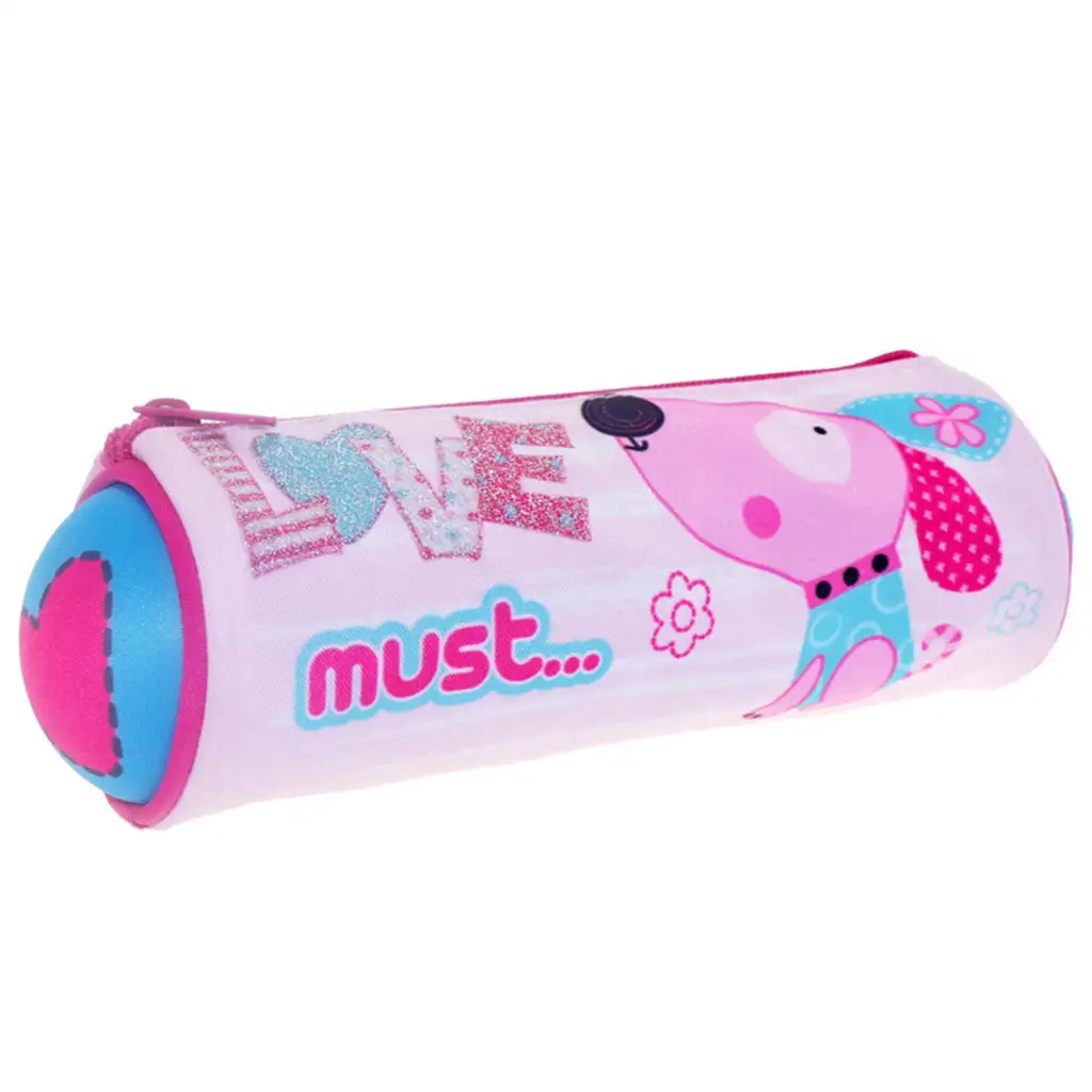 Must: Rózsaszín hengeres kutyusos tolltartó 20x8cmMust: Rózsaszín hengeres kutyusos tolltartó 20x8cm