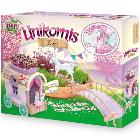 Gyermeked számára most egy különleges kis kertet szerezhetsz be, mely kreativitást is igényel. Ebben a szettben - a virágföldön kívül - minden megtalálható, amire csak szüksége lesz hogy egy tündéri kertet hozzon létre. Virágokat, fűmagot és még színes kavicsokat is felhasználhat, de egy kút is a rendelkezésére áll, valamint egy csodaszép unikornis is egy tündérrel, ami együtt nagyon varázslatos megjelenést nyújt a kertnek. A füvet locsolni kell, hogy szép maradjon és szobájának különleges hangulatot nyújt majd.