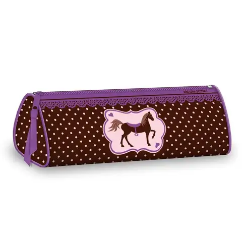 A My Horse termékcsalád tökéletes választás lehet a lovak kedvelőinek, de vidám, tetszetős mintái miatt szinte mindenkinek elnyeri majd a tetszését. A tolltartó henger alakú, erősített varrással készül, hogy írószereink a lehető legnagyobb biztonságban legyenek. A hengeres tolltartók nagy előnye, hogy könnyen és gyorsan ki- és bepakolhatóak az írószerek, így például a felsőbb tagozatosoknak, ahol gyakran váltogatják a gyerekek a termeket, kimondottan alkalmas. A pöttyös alapon lovas minta csipkés díszítéseket is tartalmaz, valamint a cipzáron egy szalag is el van helyezve, hogy könnyebb legyen a nyitás és zárás.