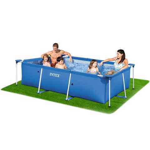 Állítsd fel saját medencédet a kertedben! A nagyméretű, téglalap alakú medence merev kerete biztosítja a nyugodt és kellemes fürdőzést az egész család számára. Csak állítsd fel egy vízszintes területen, töltsd fel vízzel és már indulhat is a nyári szórakozás. Hívd el barátaidat és élvezzétek együtt a a hűsítő vizet.