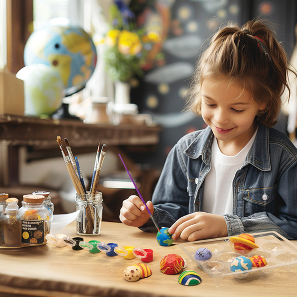 Ha szeretnél egy igazán különleges és tanulságos elfoglaltságot gyermekednek, ez a naprendszeres gipszöntő és festő készlet remek választás! A szett segítségével saját bolygókat készíthet, majd kedvére kifestheti őket, így játékosan ismerkedhet meg az űr világával. A világító festéknek köszönhetően az elkészült alkotások sötétben is ragyognak, ami még izgalmasabbá teszi a játékot. Tökéletes kreatív program, amely fejleszti a kézügyességet és a képzelőerőt.