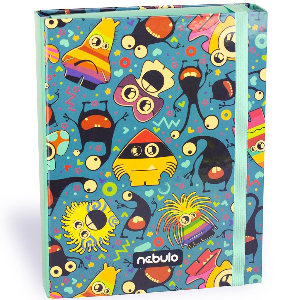 Nebulo: Füzetbox A/5-ös méretben vicces szörnyek mintávalNebulo: Füzetbox A/5-ös méretben vicces szörnyek mintával