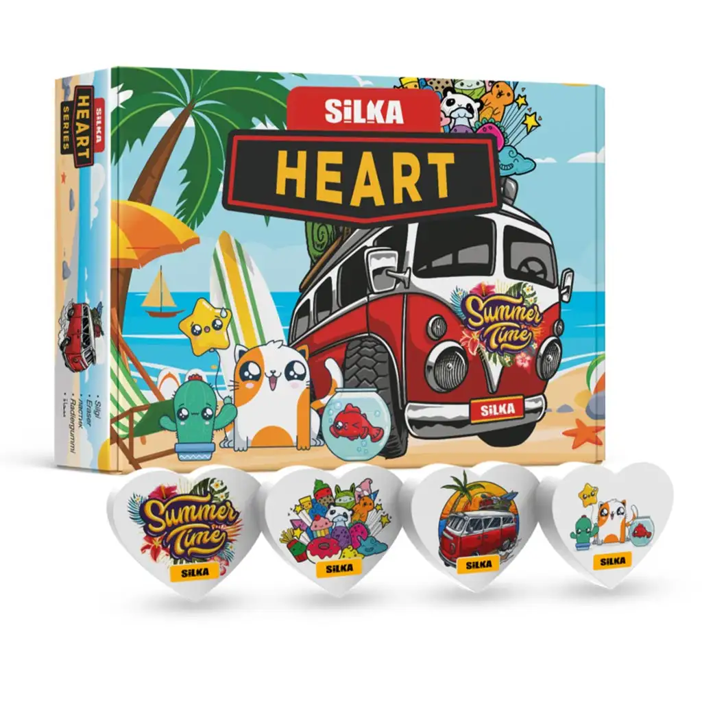Színesítsd meg a hétköznapokat ezekkel a szív alakú Silka radírokkal! Ezek a különleges radírok nemcsak praktikusak, hanem igazán stílusosak is. A szív formájú radírok különféle mintákkal vannak díszítve, amelyek biztosan elnyerik a gyerekek tetszését. Legyen szó iskolai munkáról vagy otthoni rajzolásról, ezek a radírok mindig kéznél lehetnek. A Silka radírok kiváló minőségű anyagokból készülnek, így hatékonyan törlik a grafitot, miközben kímélik a papírt. Ergonomikus kialakításuknak köszönhetően könnyen megfoghatók, és kis méretük miatt bárhová magaddal viheted őket. Ideális választás ajándékként is, hiszen minden gyermek örömmel fogad egy ilyen vidám és hasznos eszközt.