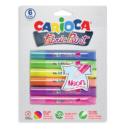 A Carioca neon textilfestékek segítségével csodás dekorációkat készíthetsz a ruhádra, táskádra, cipődre vagy egyéb divatkiegészítőidre. A tubusokban különböző színű neon festékeket találsz, melyeket kinyomva a vékony hegyek segítségével bármit írhatsz vagy rajzolhatsz a kívánt felületre. Ha végeztél, a festék gyorsan megszárad és tartós bevonatot képez a felületen. A készletben 6 különböző színű festéket találsz.