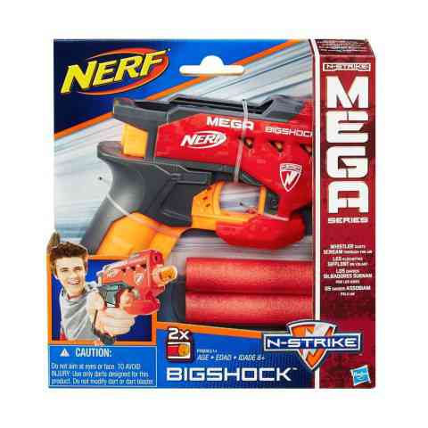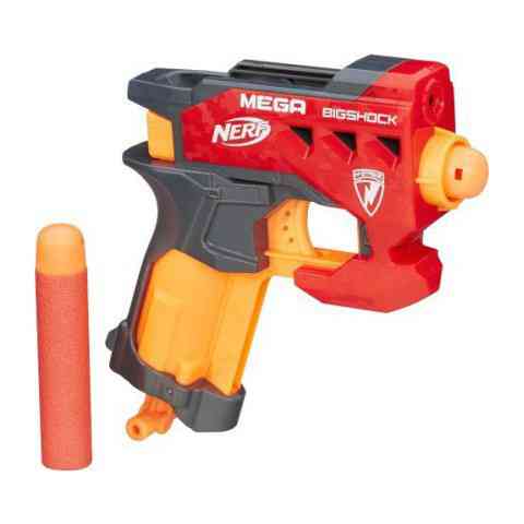 A Nerf Mega Big Shock-ra igaz az a mondás, hogy „kicsi a bors, de erős...”. Ez a látszólag kis méretű fegyver ugyanis Mega töltényeket tüzel a szó szoros értelmében. A pisztoly könnyen kezelhető, gyorsan újratölthető és felhúzható. A töltény közel 30m-es távolságra repül, így még a legmesszebbi célokat is könnyedén eltalálod majd vele. A kis méret miatt jól elrejthető és bármelyik csatába magaddal viheted akár elsődleges, akár kiegészítő fegyverként használod, biztosan megállja majd a helyét!