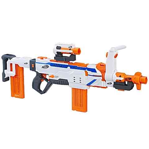 Állítsd össze saját fegyvered! A Nerf Modulus technológiának köszönhetően a szivacslövő fegyver elemeit Te magad illesztheted össze, valamint más, Nerf Modulus fegyverek alkatrészeivel kombinálhatod is azokat! A szuper Regulator szivacslövő 3 tüzelési módot tartalmaz, így egy húzással egy vagy több lövedéket is elindíthatsz. Töltsd meg a tárat és célozz, az elektromos rásegítéssel működő fegyver remekül használható a csata során. Barátaiddal lőjetek célba, ehhez szabadon átalakíthatod a fegyvered.