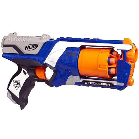 A sebesség és a könnyű hordozhatóság a két legfőbb előnye ennek a szivacslövő fegyvernek, melynek villámgyors szivacslövedékeit gyorsan egymás után lőheted ki. A Nerf Strongarm ugyanolyan tűzerővel rendelkezik mint a többi N-Strike fegyver, ami a 6 lövedéket gyorsan lövi ki, ha nyomva tartod a ravaszt.