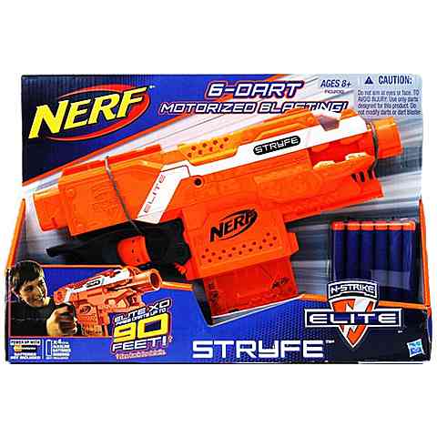 A szett tartalmazza a Nerf Stryfe szivacslövő fegyvert, valamint 6db Elite lövedéket és használati útmutatót.