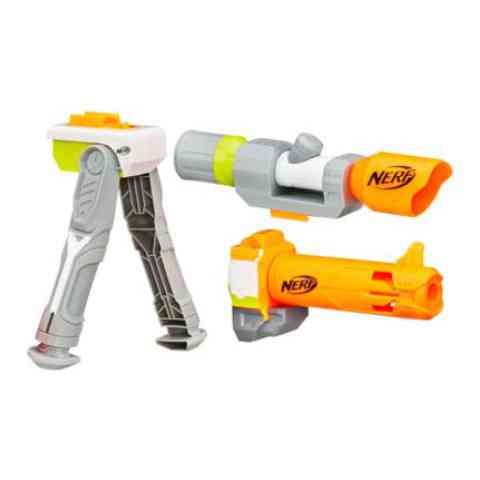 Könnyedén mesterlövész puskát varázsolhatsz a Nerf Modulus fegyveredből ezzel a különleges kiegészítő készlettel. A csomagban találsz egy puskára erősíthető távcsövet, egy kinyitható talpat és egy csőhosszabbítót, melyek együttesen sokkal pontosabb találatot tesznek lehetővé a távoli célpontok esetében is. A Nerf Modulus különlegessége, hogy tetszés szerint variálhatod rajta a kiegészítőket és így egy különleges, egyedi fegyvert hozhatsz létre, mely minden igényednek megfelel!