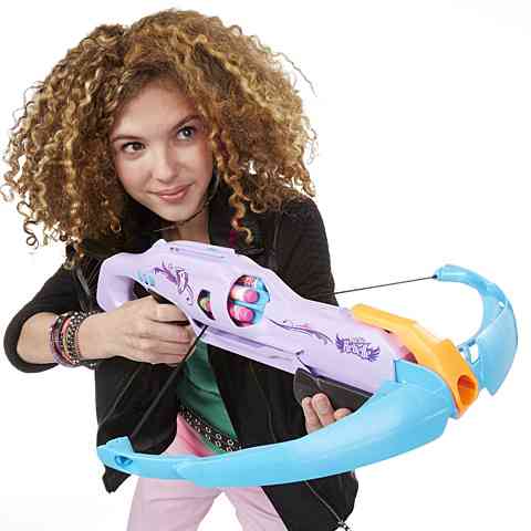 A lányok kedvenc fegyvere ezentúl garantáltan biztonságban lesz, hiszen nem használhatja azt akárki! Az íjpuska oldalán a megfelelő kódot kell beállítani, hiszen a fegyver csak ebbe na esetben lesz képes tüzelni. A kifejezetten lányok számára kialakított íjpuska forgótárral rendelkezik, melybe nyolc szivacslövedéket helyezhetnek el a fegyver használói.