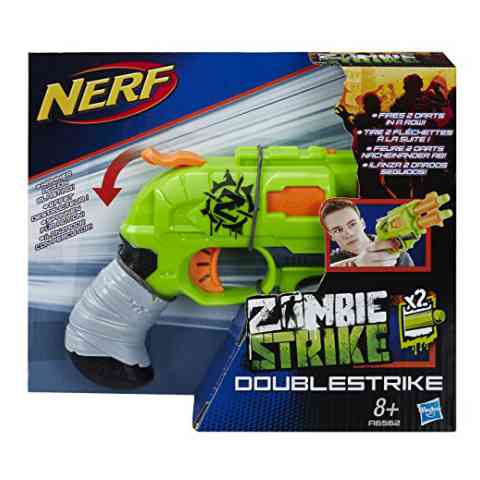 Ismerkedj meg az egyik leghatásosabb fegyverrel a Zombik elleni küzdelemben! Az új Doublestrike rengeteg újítást tartogat a számodra, melyek még hatásosabbá teszik a fegyvert. A pisztolyba 2db Nerf szivacstöltényt tudsz behelyezni előre. A fegyver úgy működik, akár az igazi; fel kell húzni a kakast, majd a ravasz elsütése után repül is a szivacstöltény. Egyszerre egy töltényt lőhetsz ki vele, így amikor a másodikat ki szeretnéd lőni, ismét fel kell húzni a fegyvert. Ezentúl nem kell attól tartanod, hogy a pisztolyod használata után nem marad töltény a tárban és akár egy kézzel is használhatod, hiszen a fegyvert tartó kezeddel egyben fel is tudod húzni!