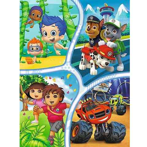 Ezen az egyetlen puzzlen a Nickelodeon mesecsatorna négy rendkívül népszerű meséje is megtalálható, így a kicsiknek nagy élményt jelent mejd kirakni, hiszen a mancs őrjárat cuki kutyusaitól kezdve a Láng és a szuperverdák vagány járgányaiig minden népszerű mesehős visszaköszön róla. A Trefl puzzle darabok tökéletesen illeszkednek és a kompromisszummentes, professzionális nyomdai eljárásoknak köszönhetően az elkészült kép lélegzetelállítóan éles és színpompás, így ragasztóval összeragasztva bármelyik szoba legmutatósabb dísze lehet belőle.