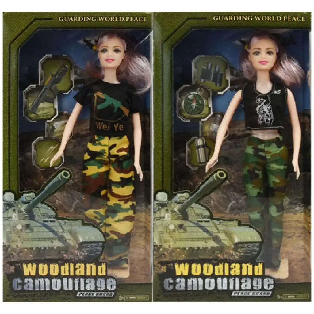 Nicky divatbaba terepszínű ruhában többféle változatbanNicky divatbaba terepszínű ruhában többféle változatban