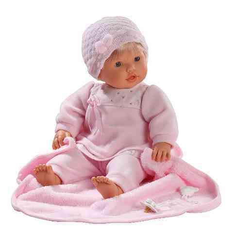 Nina síró lány baba rózsaszín takaróval 48cmNina síró lány baba rózsaszín takaróval 48cm