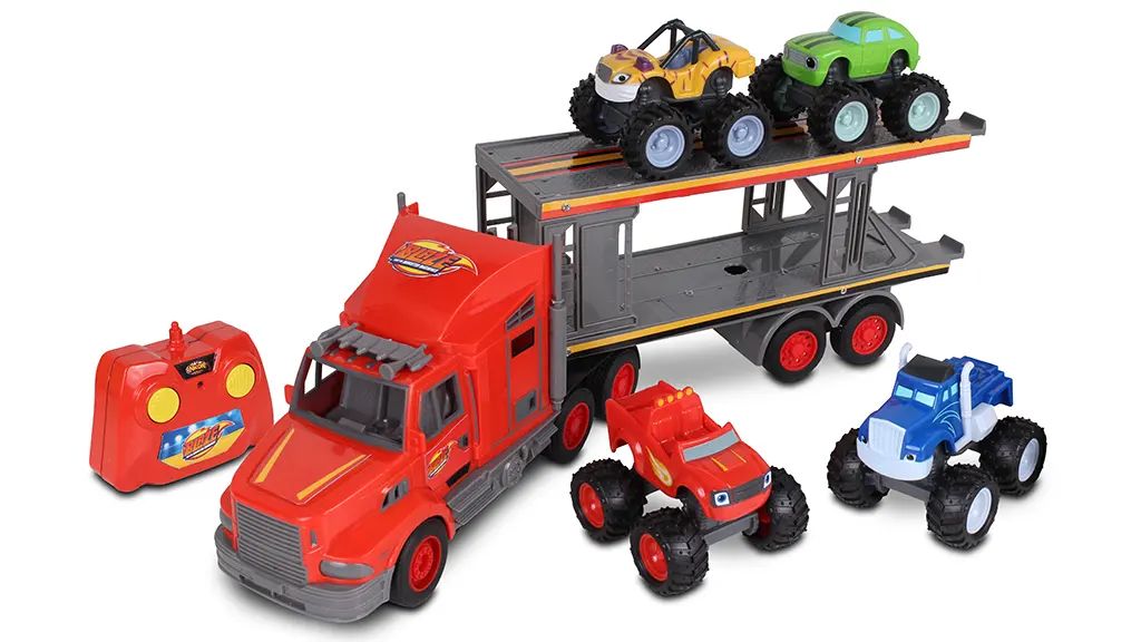 A rajzfilmsorozat alapján az NKOK Blaze és a Szörnyeteg Gépek: R/C Szállító mindent tartalmaz, amire a gyerekeknek szükségük van kedvenc jeleneteik újraalkotásához. Először a kicsik felrakhatják a kisebb Szörnyeteg Gépeket – Blaze-t, Pickle-t, Crusher-t és Stripes-t – a Szállító két szintjére. Ezután a családok a távirányító segítségével különböző irányokba mozgathatják a szállító teherautót!
