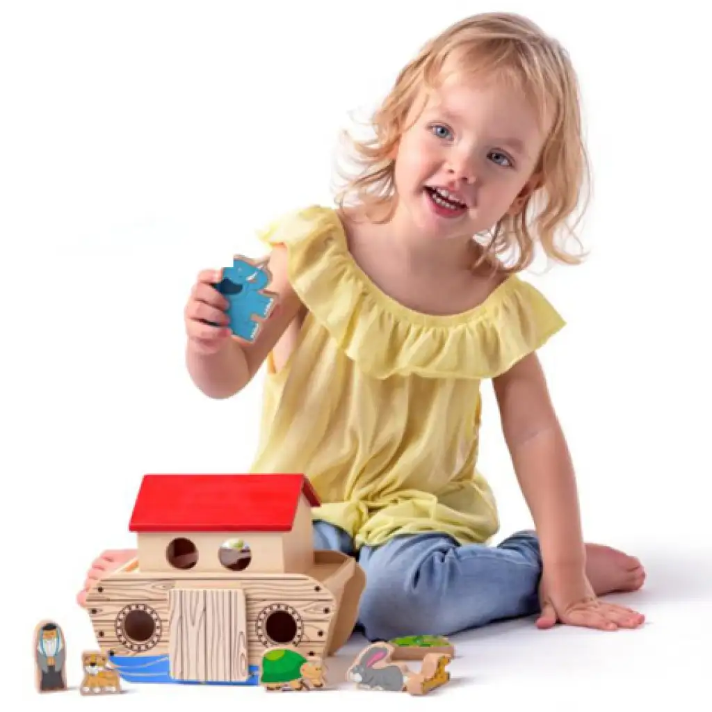 A kisgyerekek ennek a remek fa játék segítségével ismerkedhetnek meg a különféle állatokkal és közben számos készségüket fejleszthetik. A Noé bárkája fa játék természetesen első sorban egy több mint húsz centiméteres hajót tartalmaz és persze Noét valamit az állatokat. A tizenhárom darabos készletben természetesen a hajó a legnagyobb, de azon túl nyolc különféle állatot, és két embert is találnak a gyerekek, így egészen nagyszerű játékélményt kínál a kicsiknek.