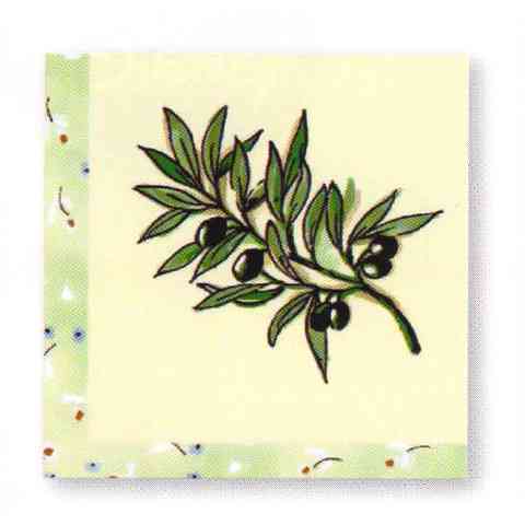 Az olajággal mintázott szalvétának számos üzenete lehet az asztalon, a teríték részeként. Az olajág üzenete a béke, mint a keresztény, mint a görög mitológiában. Húsvéti terítékhez is ajánlott, hiszen Jézus olajfából készült kereszten adta át életét teremtőjének. A szalvétát meghatározó szín a sötétzöld, ami a nyers színű abroszon igen elegánsan mutat. A sötétzöld, ami feljődést és harmóniát jelent, így a hétköznapi asztalok méltó dísze is lehet.