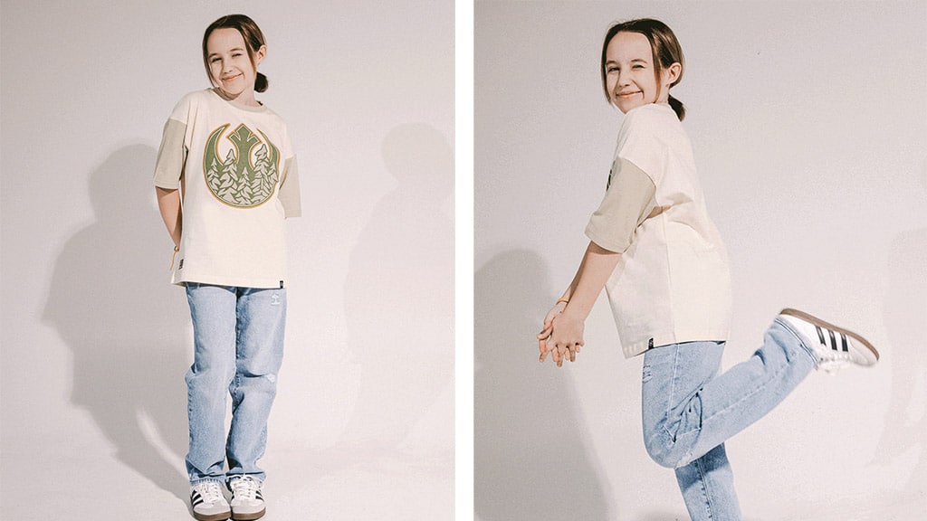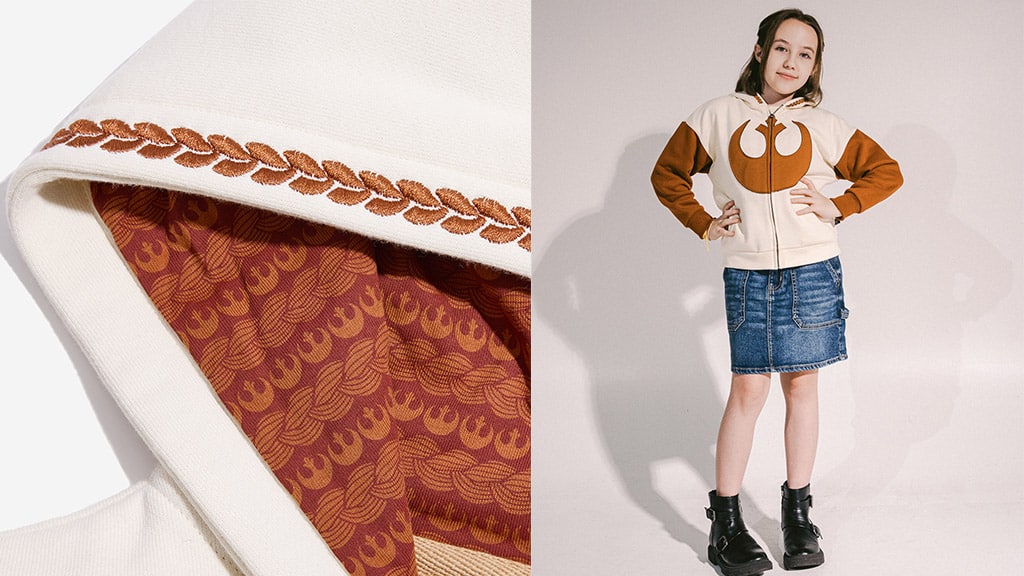 Minden egyes darab a kollekcióban rendkívüli odafigyelést mutat a részletekre, messze túlmutatva a szokásos gyerekeknek szánt termékeken! A Rebels of Alderaan kapucnis pulóver (65 dollár) egy nagy Lázadók Szövetsége felvarróval és egy hímzett Alderaan-erdő címkével díszített az elején. A kapucni szélét és a belső részét fonott varrás szegélyezi, amely Leia ikonikus frizuráját idézi. A Rebels of Alderaan gyerek bomberdzseki (100 dollár) szintén utal Blair szerepére az Obi-Wan sorozatban: steppelt ujjakbordázott szegélyek és gombok teszik teljessé, amelyek a filmben viselt zöld kabátját idézik. Ezek a ruhadarabok nemcsak stílusosak, hanem a Star Wars univerzum rajongóinak is különleges élményt nyújtanak, hiszen minden részletükben visszaköszön a történet és a karakterek világa.