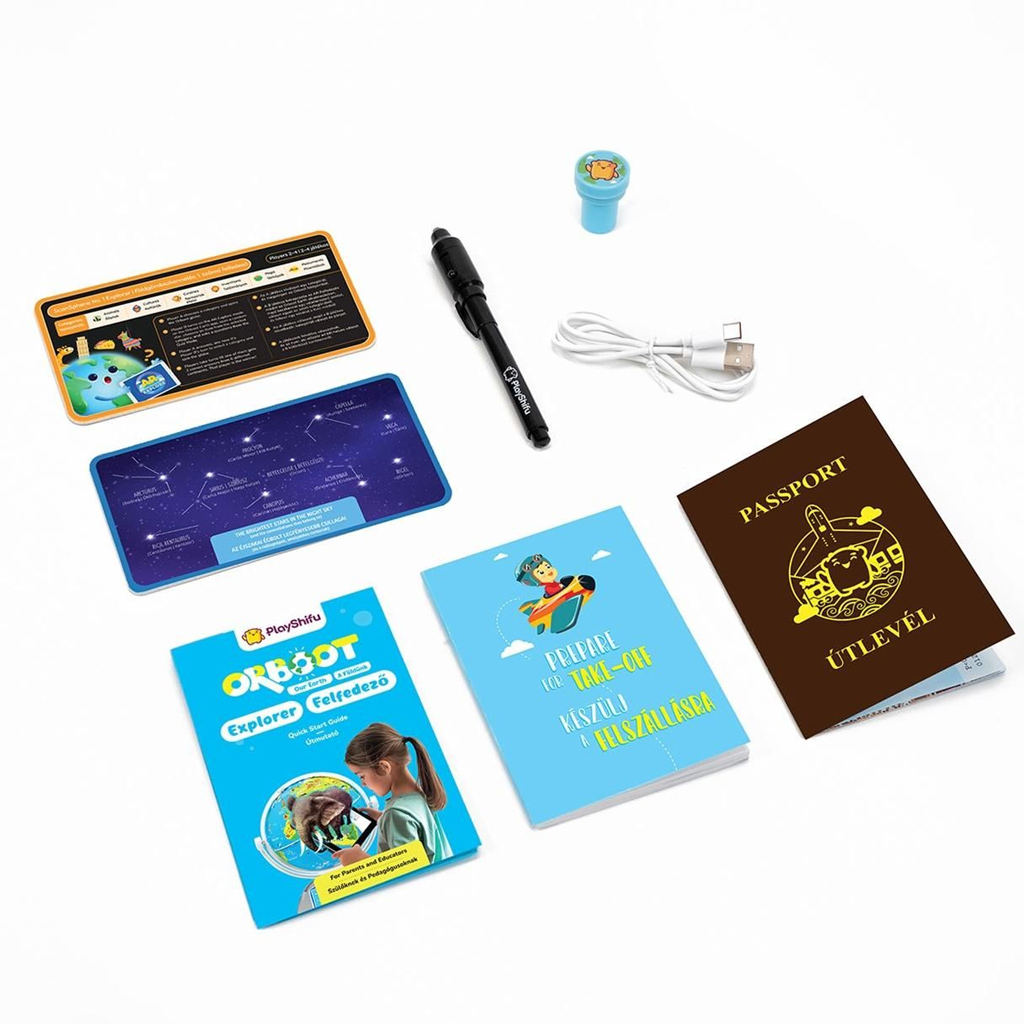 Tartozékok: földgömb, varázstoll, útlevél, matricák, töltőkábel
