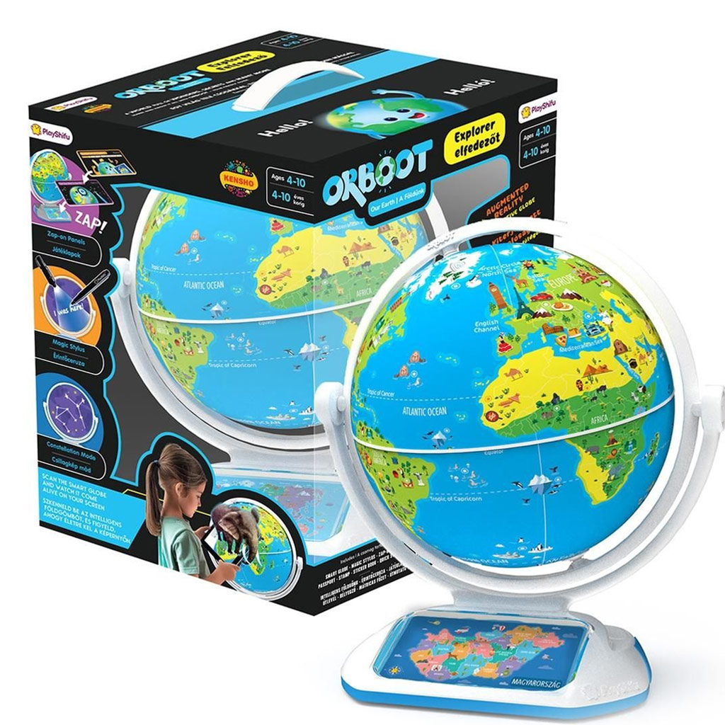 Az Orboot Earth Földgömb egy igazi kalandra hívja a gyerekeket, ahol a tanulás játékos felfedezéssé válik. Ez a különleges földgömb nemcsak színes és részletes térképet mutat, hanem az augmentált valóság segítségével életre is kelti a világot. Egy okoseszközre letölthető ingyenes alkalmazással a gyerekek a földgömb különböző pontjaira irányíthatják a mellékelt varázstollat, és azonnal megjelennek előttük 3D-s állatok, híres épületek, kulturális érdekességek vagy akár időjárási jelenségek.