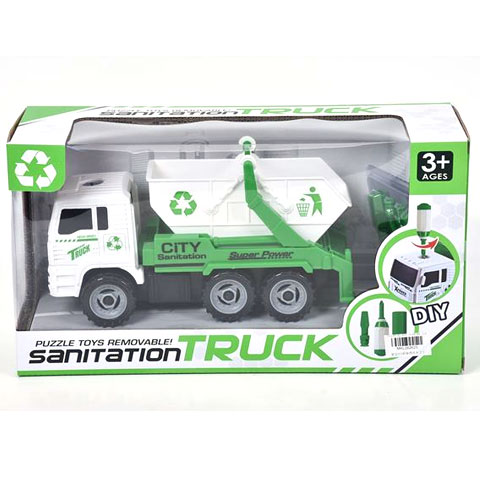 Összeszerelhető konténeres kukásautó zöld-fehér színbenÖsszeszerelhető konténeres kukásautó zöld-fehér színben