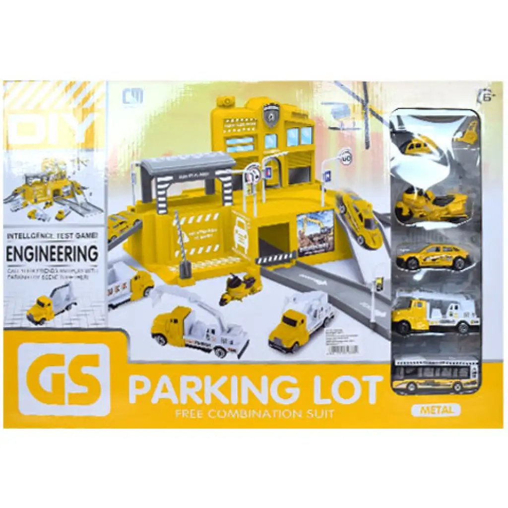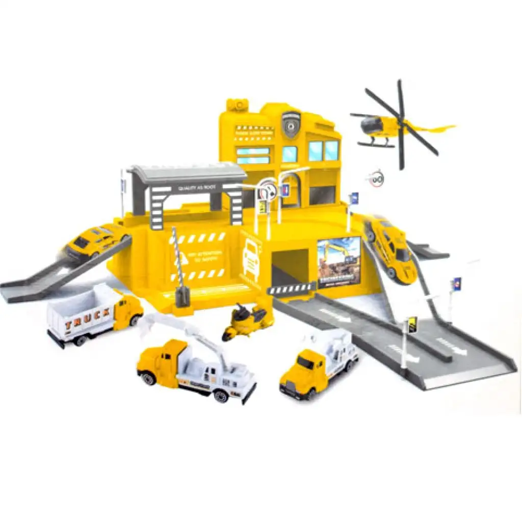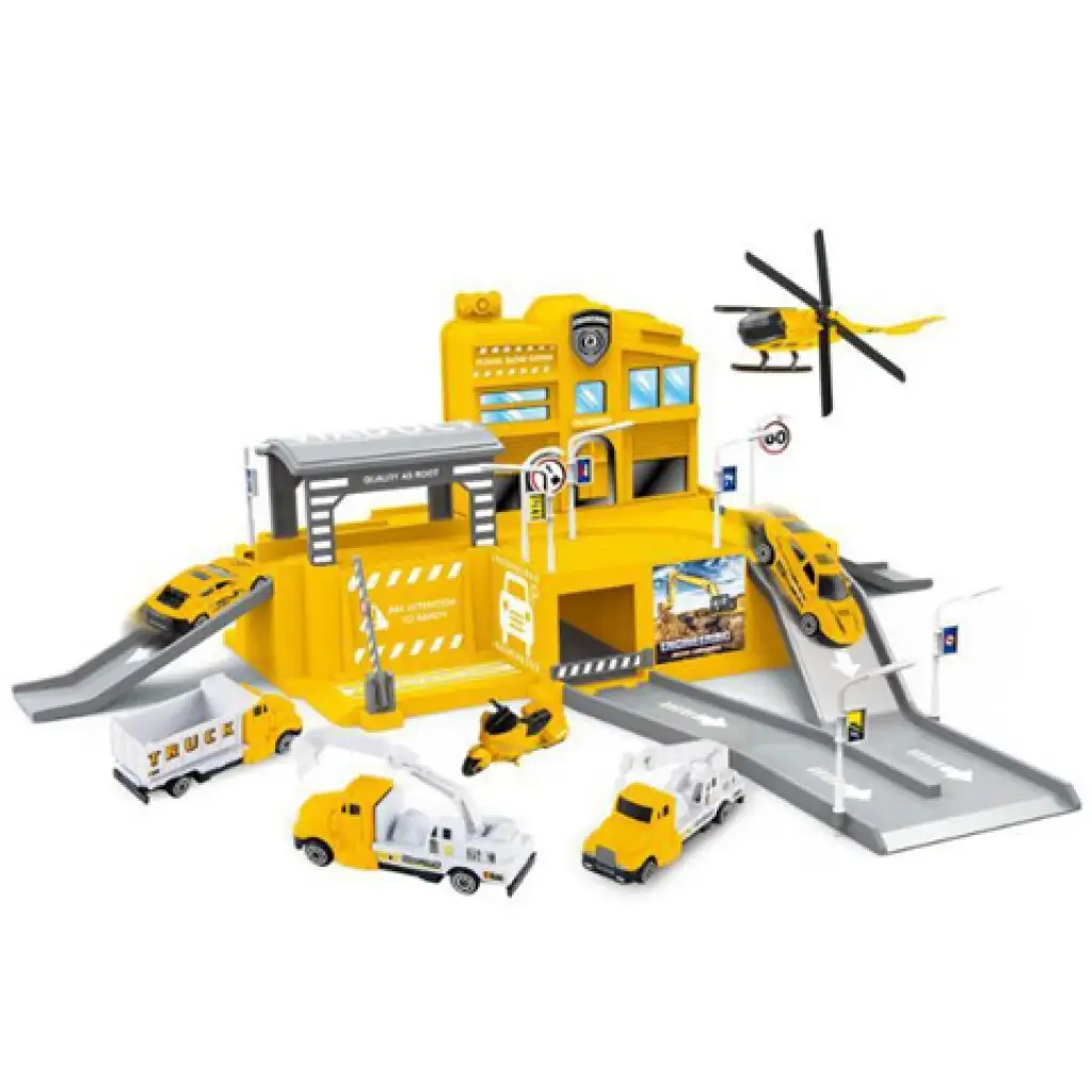 A parkolóházakat imádják a gyerekek, hiszen nagyon különleges játékélményt kínálnak a számukra, különösen, ha van hozzá kisautó is, amivel minden funkciót jól ki lehet próbálni. Ennek a sárga színű parkolóháznak a különlegessége pont ebben rejlik, hiszen a készletben a szokványos kisautókkal ellentétben helikoptert és különféle munkagépeket is találhatunk. A parkolóház pedig a több szintes kialakításával és a jelzőtáblákkal járul hozzá a remek játékélményhez.