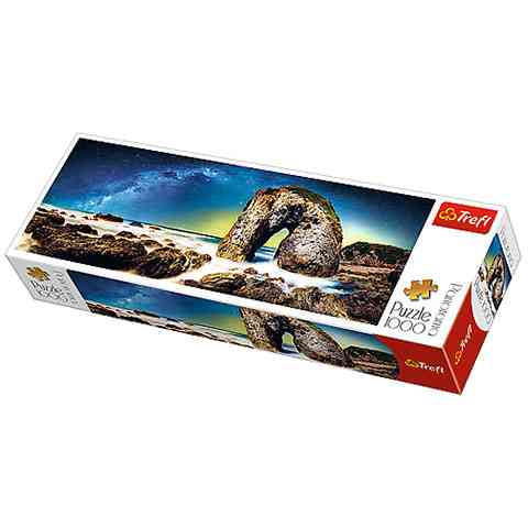 A panoráma puzzle különlegessége hogy majd egy méter széles és csak harmincnégy centiméter magas, így egy hosszúkás képet eredményez. Az ezer darabos puzzle egy csodaszép tengerpartot ad ki, ami felett jól látható asz éjszakai égboltot ékesítő csillagok és a tejútrendszer. A Trefl puzzle darabok tökéletesen illeszkednek és a kompromisszummentes, professzionális nyomdai eljárásoknak köszönhetően az elkészült kép lélegzetelállítóan éles és színpompás.