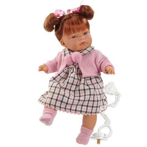 Ez a csodálatos, vörös hajú baba kiváló játék minden gyermeknek. Igényes kidolgozás valódi játékélménnyel gazdagítja a gyermeket. A baba ruhájának ízléses szabása és visszafogott szín és mintavilága a gyermeket gazdagabbá teszi, jóízlést tanul. A baba zoknijának rózsaszínje a szintén hurkolt anyagú pom-pomos kardigánján köszön vissza. A baba sírása hiteles, mely akkor marad abba, ha a cumit a gyermek a baba szájába helyezi.