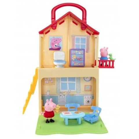 Gyermeked számára egy különleges házikót hoztunk el, mely biztosan elnyeri majd a tetszését. A házikó kétszintes kialakítást kapott, így felül egy fürdőszoba és hálószoba valamint egy terasz található, az alsó szinten pedig egy konyha, aminek falát le lehet nyitni, így nyerünk betekintést a belsejébe. A könyvespolc ággyá alakítható, így Peppa és George kipihenhetik a játék fáradalmait. A házhoz még egy lépcső is tartozik, valamint könnyen lehet hordozni is, köszönhetően becsukható falának és hordozó fülének. Kiváló minőségének köszönhetően sokáig lehet majd használatban.