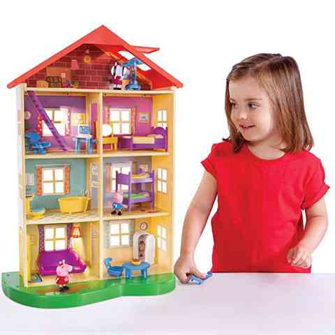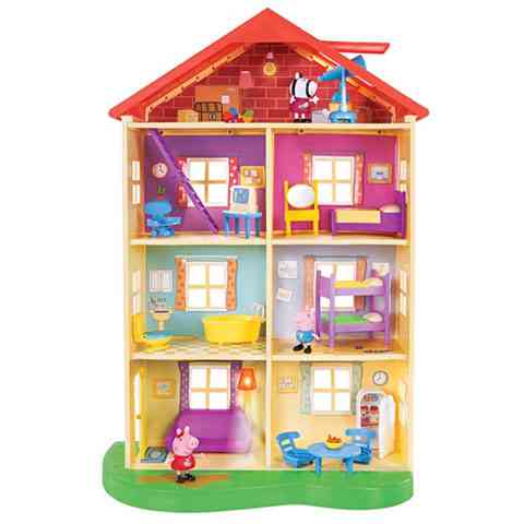 Peppa malac családi háza egy négyszintes hatalmas babaházként lehet most gyermekedé, melyben különleges kiegészítők találhatóak meg. A szettben 3 db figura található meg, melyek Peppa, George és Zoé, akik mind megtalálhatják a legjobb szórakozást a házban. A földszinten egy nappali és a konyha található meg, melyekben hűtőszekrény, kanapé és asztal is van. Egy emelettel feljebb egy fürdőszoba káddal és WC-vel valamint egy hálószoba található emeletes ággyal, a harmadikon pedig egy pihenőszoba és még egy háló, de a 4. szinten egy padlás van, amiben még teleszkóp is van. Ezt a teleszkópot a nyitott ablakon keresztül használhatják és kémlelhetik vele az eget. A Házikó különböző hang és fény effektekkel rendelkezik, ami még szórakoztatóbbá teszi a játékot a gyermekek számára.
