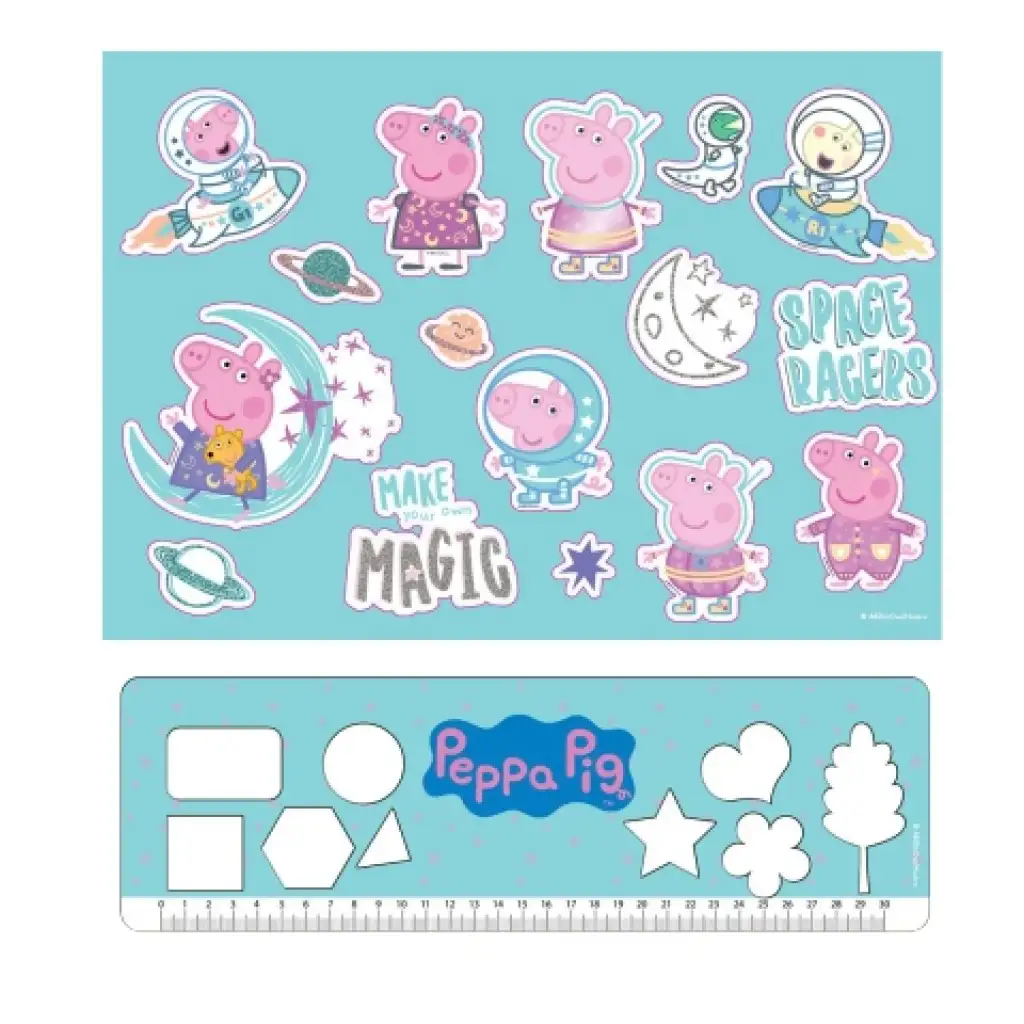 Ez a fantasztikus vázlatfüzet szett remek választás a gyerekeknek, ha rajonganak a kedves Peppa Malacért. A füzetben 40db színezhető-rajzolható oldal található, melyekhez még egy ív matrica és egy különleges, Peppás sablonformákkal ellátott kis vonalzó is található. A gyerekek kedvük szerint dekorálhatják majd a vázlatfüzet oldalait és bárhová magukkal vihetik azt, hogy mindig legyen idejük egy kis kreatív munkára.