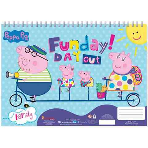 Peppa malac nagyon népszerű a gyerekek körében, és biztos, hogy örömmel rajzolhatnak egy olyan vázlatfüzetben, ami a kedvenc mesefigurájukkal van díszítve. A 23x33 centiméteres sima lapokat spirálos megoldással fűzték össze, így bármikor ki lehet belőle tépni egy lapot, aminek nyoma sem marad. A harminchét sima lap mellett találni két oldalt, ami a mesehősöket ábrázolja, de a gyerekek feladata kiszínezni. A negyvenedik oldal egy ív ami több mint egy tucat matricát tartalmaz, melyek a mese legnépszerűbb szereplőit ábrázolják.