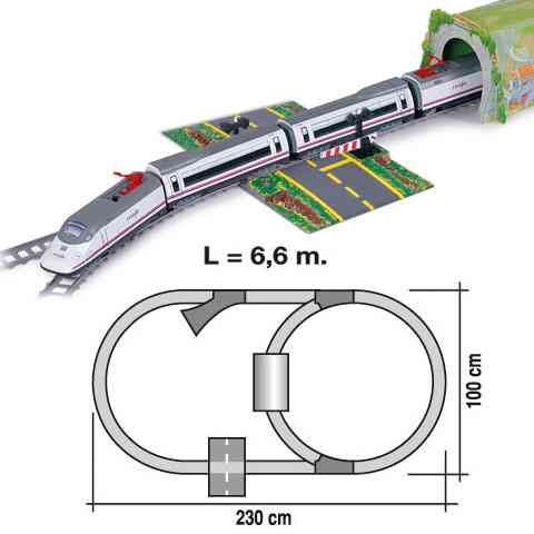 Építs egy izgalmas vasútpályát az Alvia S-130-as szuper gyorsvonat számára. Ehhez minden megtalálható a ebben a készletben. A 6,6 méternyi pályaelemeket könnyedén összeépítheted, és a két váltó beiktatásával egy alternatív útvonalat is beiktathatsz a pályába. A vasútvonalat egy alagúttal és egy autós vasútátjáróval teheted még különlegesebbé. Az elkészült pályán pedig az áramvonalas Alvia S-130-as szerelvény, düböröghet végig. A Pequetren vonatok részletgazdag kidolgozottsággal és aprólékos festéssel rendelkeznek, így mindenben megegyeznek a valódi vonatokkal. A pályaelemeket könnyen egymásba lehet kapcsolni, így akár a gyerekek is megépíthetik és variálhatják a pálya nyomvonalát. Az elemek a mozdonyba kerülnek, így egyéb áramforrásra nincs szüksége a játéknak.