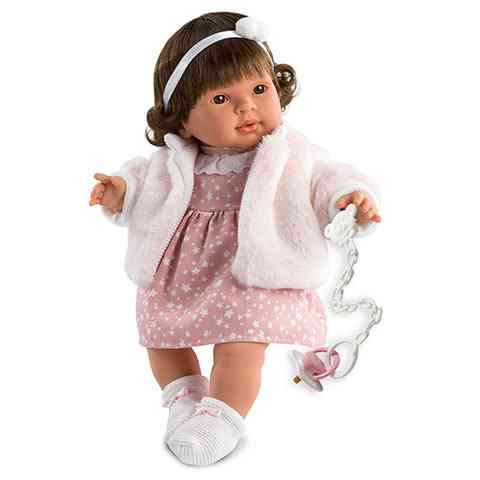Pippa egy igazán csajos kislány aki rózsaszín ruhácskában, egy meleg felsővel és persze egy pár meleg zoknival érkezik hozzád, a szép barna hajában egy pántot visel, és természetesen a kedvenc cumiját is magával viszi, amit egy csipesznek köszönhetően mindig kéznél van. A Llorens babák rendkívül részletgazdag kialakításnak köszönhetően valódi, élményekben gazdag játékélményt nyújtanak a gyerekeknek, amelyeket a cserélhető babaruhák tesznek még változatosabbá. Természetesen a babák műanyag részei mentesek mindenféle káros és allergén anyagtól.