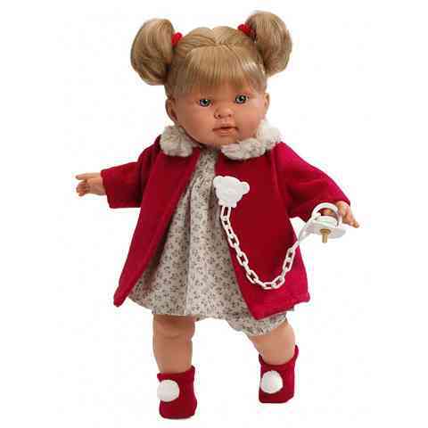 Egy öltöztethető, fésülhető kiváló minőségű spanyol babával lepheted meg kislányodat. Ennek az édes kis ruhácskába bújtatott csöppségnek biztosan nagyon fog örülni. Pippa szőke fürtökkel rendelkezik, amit két copfba fogtak. Ruháját és rövidnadrágját apró virágok díszítik. Cipője és kis kabátkája pedig piros színben pompázik. Teste pihe-puha textilből, míg arca és végtagjai gyermekbarát, kellemes tapintású műanyagból készültek. Ráadásul még egy különlegessége is van, aktív állapotban a papa és a mama szavak kimondására és sírásra is képes, amit akkor hagy abba, ha a cumiját a szájába helyezzük.