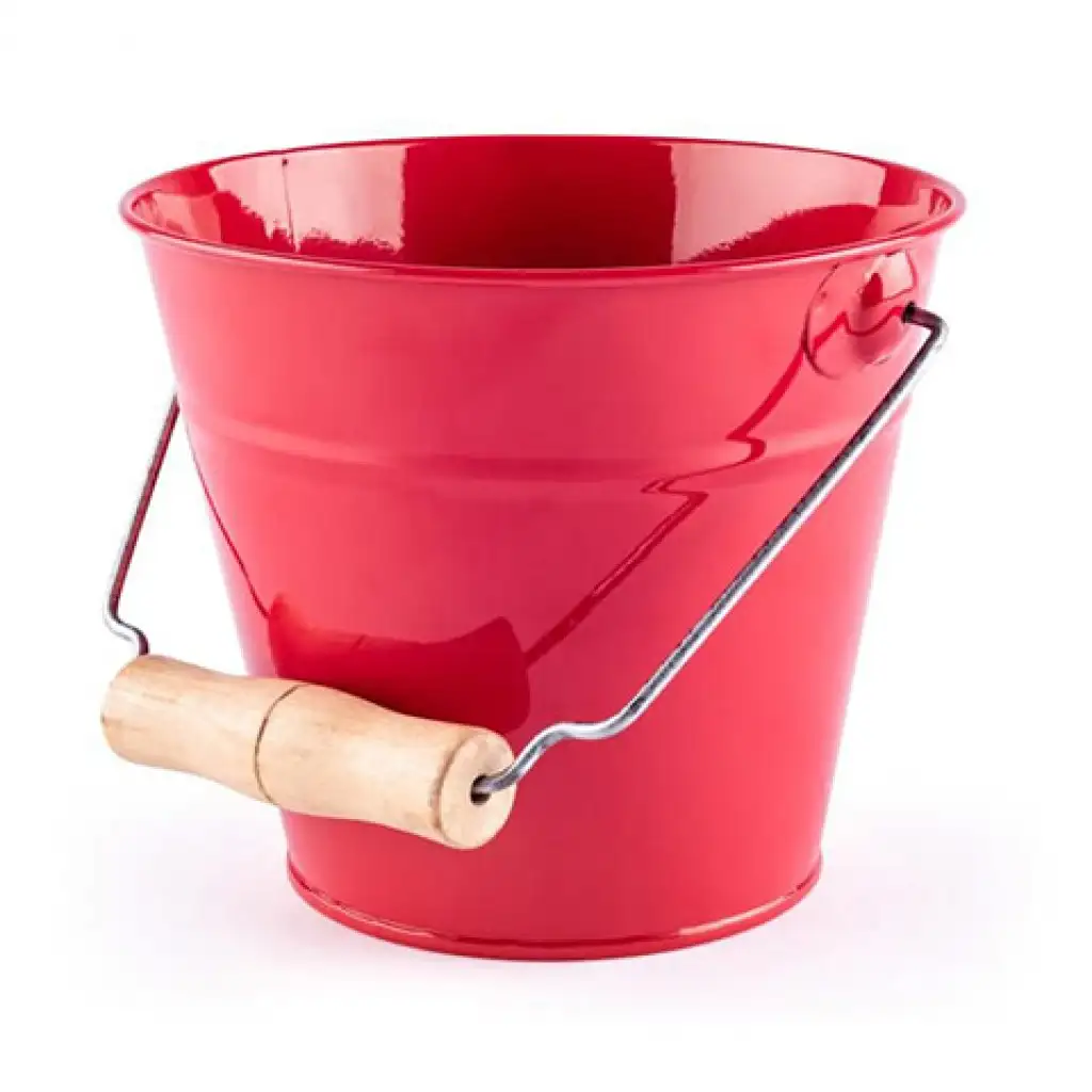 Ez a piros, fémből készült vödör tökéletes választás lehet a gyermekek számára. Egy kényelmes fából készült fogantyúval is rendelkezik ami remek fogást biztosít. Strapabíró anyagának köszönhetően apróbb kerti munkákra, illetve a homokozóban való játékra is egyaránt kiváló. Élénk piros színének és retro stílusának köszönhetően biztosan felkelti majd a gyermekek érdeklődését.