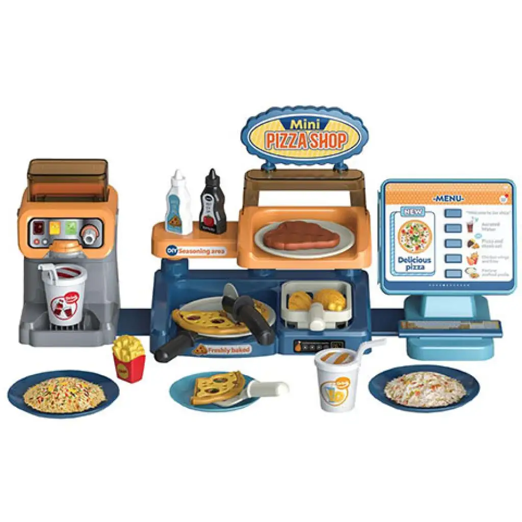 A gyorséttermek elképesztően népszerűek, de ma már nem csak hamburgerezők működnek így, hanem a legkülönfélébb ételeket vásárolhatjuk meg egy-egy gyorsétterem pultjánál. Ezzel a nagyszerű játékszettel a gyerekszobából is egy pillanat alatt egy vagány pizzéria varázsolható. A készletben egy szuper kis pult található, ami pont olyan mint a gyorséttermekben, ráadásul a benne rejlő elektronikának köszönhetően a fény és hanghatások még élethűbbé varázsolják az egészet. Természetesen nincs gyorsétterem finomságok nélkül, így ebben a készletben is bőven akadnak különféle ételek, ami igazán ínycsiklandónak látszik.