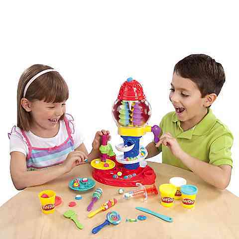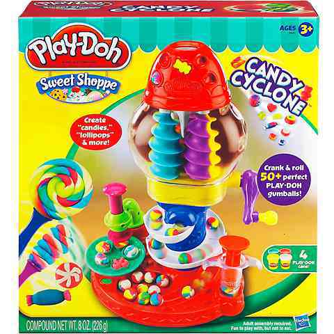 A Play-Doh Cukorkagyártó óriás gyurmakészlet tartalmazza a formázó gépet, valamint a 4 tégely színes Play-Doh gyurmát, formázókat és további kiegészítőket is.