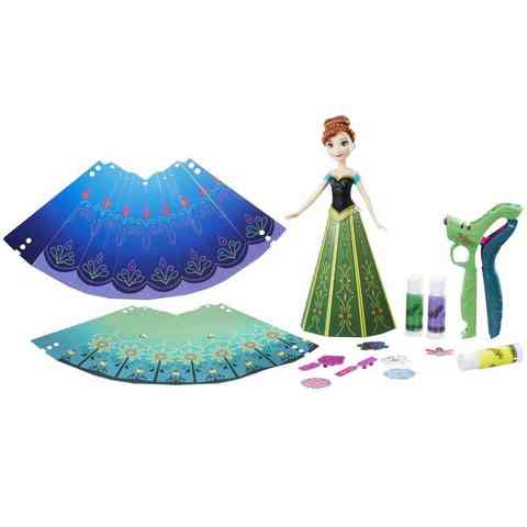 Anna hercegnő a Jégvarázs című Disney mesefilm bájos szereplője, aki mindig hisz a testvére jóságába, éppen ezért a veszélyekkel nem törődve el is megy megkeresni szeretett testvérét. Ebben a nagyszerű szettben azonban minden adott ahhoz, hogy te magad varázsolj valami igazán csodálatos dolgot. A készletben három különböző szoknya található, amelyeket egyszerűen a hercegnőre tudsz hajtogatni, de persze egy ilyen szépséges hercegnőnek csakis olyan szoknyája lehet, amilyen senki másnak nincs, így hát neked kell elkészíteni a díszítést. A készletben található három dekor gyurma és egy kinyomó melyekkel szép mintát készíthetsz a szoknyára.