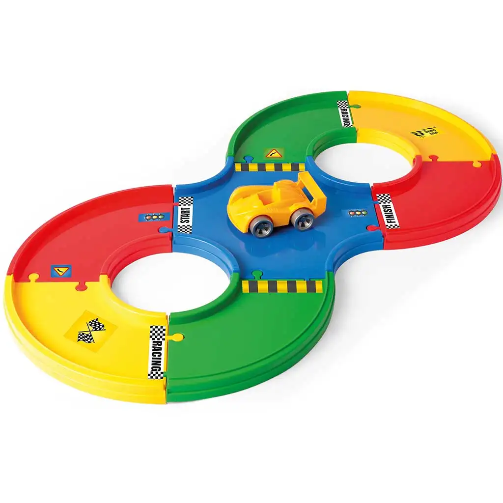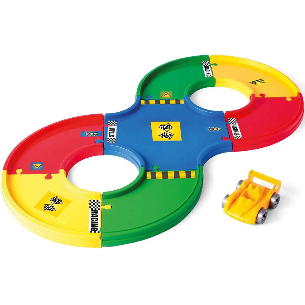 A Wader Play Tracks Alap gyorsasági pályaszett a sebesség szerelmeseinek készült! Ebben a szettben minden megtalálható, ami egy izgalmas autóversenyhez kell: 1,6 méter hosszú pálya, egy versenyautó és 36 matrica a teljes testreszabáshoz. A könnyen összeállítható pályaelemek biztosítják, hogy a kis versenyzők percek alatt készen álljanak az első nagy futamra. Az autópálya különböző színei és jelölései nem csak a szemnek nyújtanak látványt, hanem a gyerekek figyelmét is folyamatosan lekötik, miközben fejlesztik a kézügyességet és a koordinációs készséget. A matricák segítségével pedig mindenki egyedi megjelenést kölcsönözhet a versenypályának és az autónak.