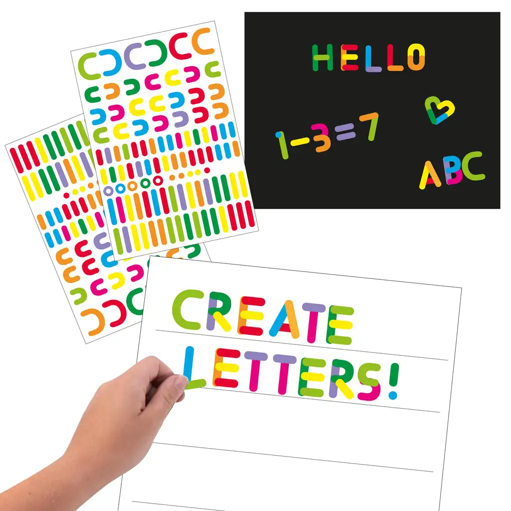 A betűalakítás oktató jellegű gyakorlása egy remek módja annak, hogy a gyermekek játékosan fejlesszék a betűfelismerést és az írást. A készletben 6 db matricalap található összesen 600 matricával, amelyek különböző formákat képeznek, és segítségükkel létrehozhatók az összes betű. Egyszerűen ragaszd be az alakzatokat a mellékelt lapokra, és már kezdheted is gyakorolni a betűk felépítését.
