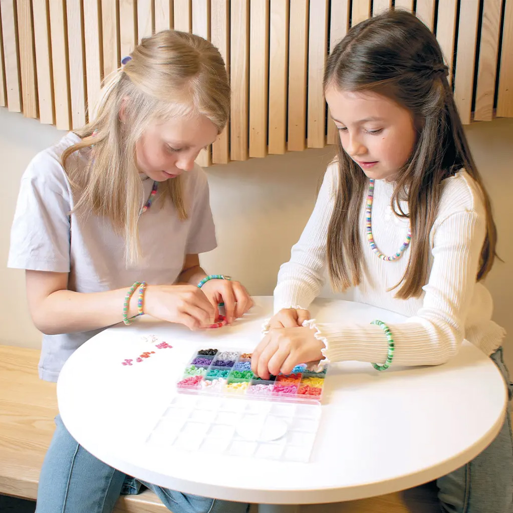 A PlayBox Heishi fűzhető gyöngy készlet remek választás, ha gyermeked szeret saját ékszereket készíteni. A készlet összesen 3500 darab színes Heishi gyöngyöt tartalmaz, amelyek lapos, korong alakú formájuknak köszönhetően különösen jól mutatnak karkötőkben, nyakláncokban vagy akár kulcstartókban is. A különböző vidám színek lehetővé teszik, hogy gyermeked egyedi mintákat és színkombinációkat alkosson.