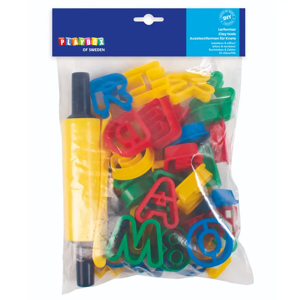 - 26 darab betű alakzat: Ezek a formák lehetővé teszik az egyedi üzenetek, nevek vagy szavak létrehozását a gyurmából.