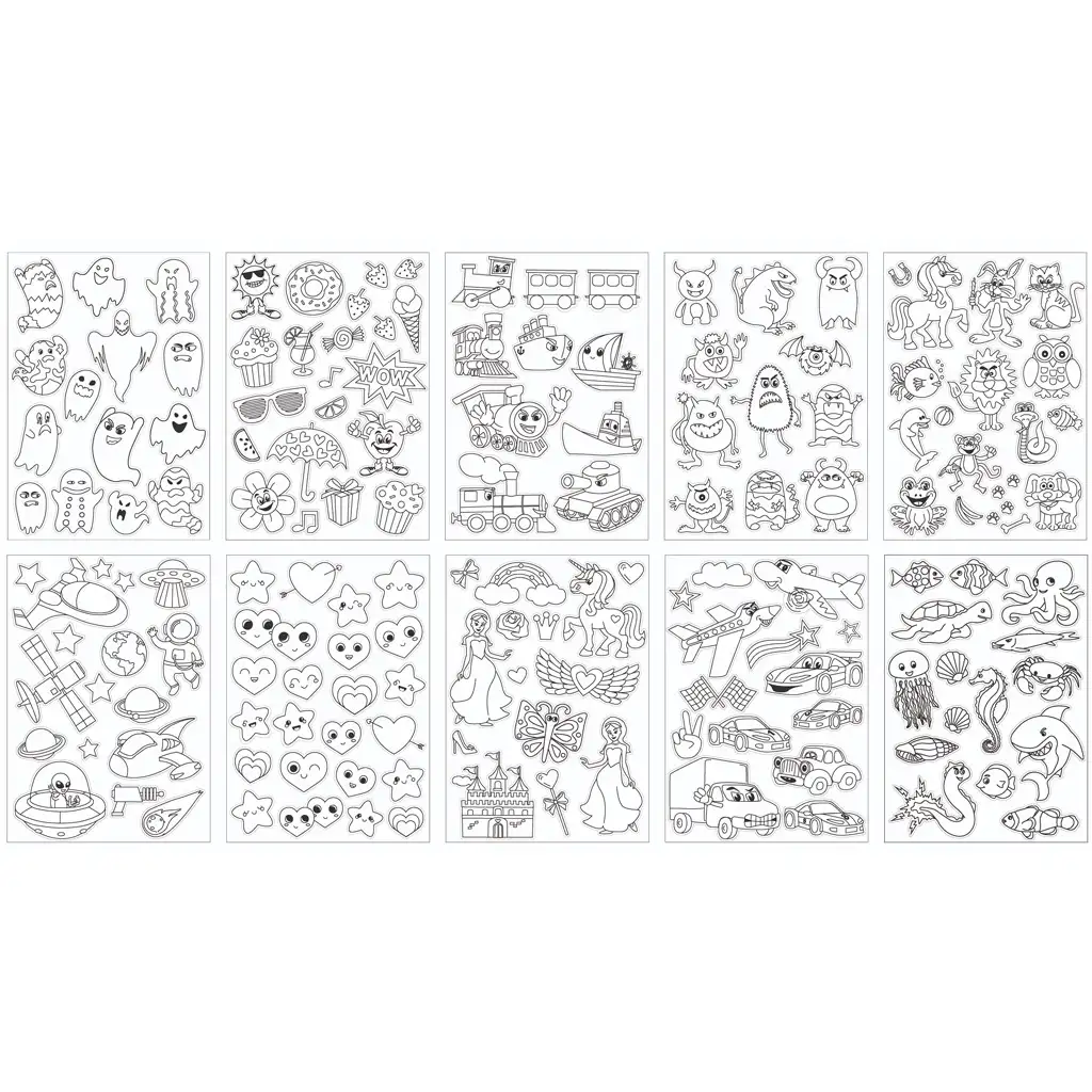 Ez a csomag tíz lapot tartalmaz, mindegyik lapon sok különböző motívum található, melyeket te színezhetsz ki a saját stílusodban. Összesen 160 matricát kínál, így bőségesen van lehetőség a kreativitás kibontakoztatására.