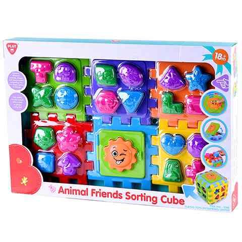 Ez a formaválogató kocka megannyi érdekességet rejt magában, amit igazi kaland lesz felfedezni a kicsiknek. A különleges kialakításának köszönhetően a formaválogató kocka akár lapjaira szedve, kiterítve is használható a gyerekek számára. A kedves állatokkal díszített formák kiválóan fejlesztik a gyerekek formafelismerését és a megfelelő helyre való illesztés közben a szem-kéz koordináció és a finom-motorikus készségek is fejlődnek. A hangot adó és felnyitható napocska felfedezése pedig egész biztos nagy élmény lesz a kicsiknek.