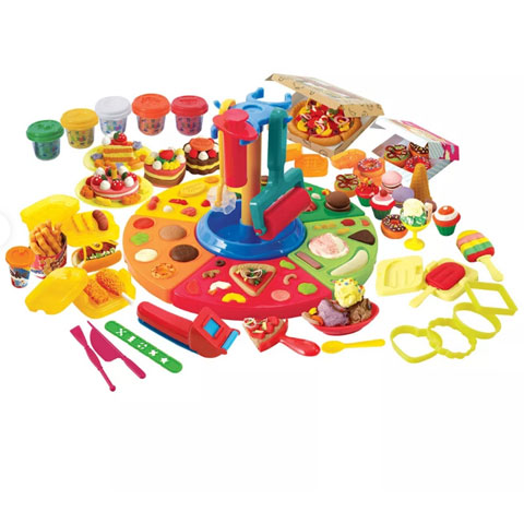 Egy igazán különleges szettel lepheted meg gyermekedet, aki rengeteg mókás percet tölthet majd el ezzel a szettel. A csomagban különböző kiegészítők találhatóak meg, valamint különböző színű gyurmák tégelyekben. A kiegészítők között különböző formázó sablonokat, vágó lapító eszközöket találhatunk, melyekkel a gyurmát lehet formázni, ezekből pedig különböző ételeket lehet elkészíteni. Ezek az ételek akár egy délutáni uzsonnaparti kiváló kellékei lehetnek, így még több játékban lesz majd része gyermekednek.