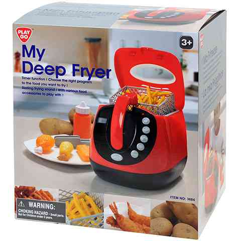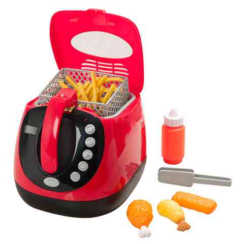 Egy olajsütő mindig jól jön a háztartásban, hiszen sokkal tisztábban tudjuk tartani a konyhánkat, emellett pedig az ételek is sokkal finomabbak, ropogósabbak lesznek. Gyermeked játék konyhájából nem maradhat ki a Deluxe olajsütő szett, mely kidolgozásában olyan, akár az igazi. Nyomd meg az open gombot, hogy kinyíljon az olajsütő fedele és bele tudd helyezni a játék krumplikat, majd csukd le és várd meg, amíg elkészül az ízletes finomság. A különféle ételekhez, melyeket a készlet is tartalmaz más és más gomb megnyomásával tudnak a kicsik megsütni, melyeket a végén megkoronázhatnak a ketchup-pal, és már csak annyi lesz a dolguk, hogy feltálalják egy szuper Playgo étkészlet segítségével.
