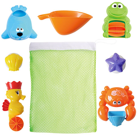 Minden fürdés egy kis élmény a gyerekek számára, azonban az egész pancsolásban a legjobb rész, amikor elő kerülnek a fürdő játékok, amelyekkel nagyszerűen el lehet mókázni a vízben. Ebben a készletben mókásabbnál mókásabb fürdőjátékok kerülte bele, így találhatunk benne olyan csikóhalat, amelyiknek a farkánál egy vízikerék kapott helyet, vagy egy békát, aki a kezei között tart hasonló szerkezetet. A fóka és a rák figurák úgy lettek kialakítva, hogy meg lehessen tölteni őket vízzel, ami aztán szépen kifolyhat belőle. A készletben egy hálós tárolót is találunk, amit a kád oldalára tudunk rögzíteni és a használaton kívüli játékokat ebben tudjuk tárolni.