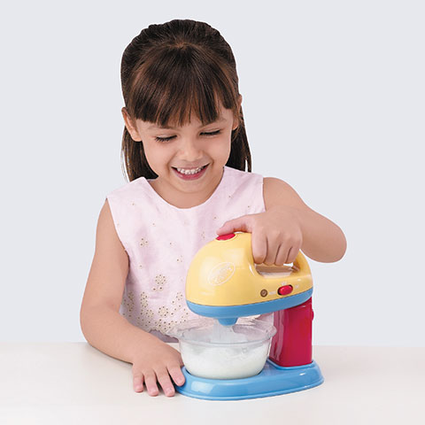 Az apró háziasszonyoknak kedvez a játék tálas mixer, mely beszerzésével teljessé válik kislányod konyhája. A termék gombját megnyomva a mixer keverőlapátja forogni kezd. Nem csak ahhoz nyújt tökéletes meglepetést a játék tálas mixer, hogy kislányod a babáinak készítse el a legfinomabb süteményeket, hanem ahhoz is, hogy készségeit fejlesztve, és anyukájától ellesve gyakorolhassa a főzés fortélyait.